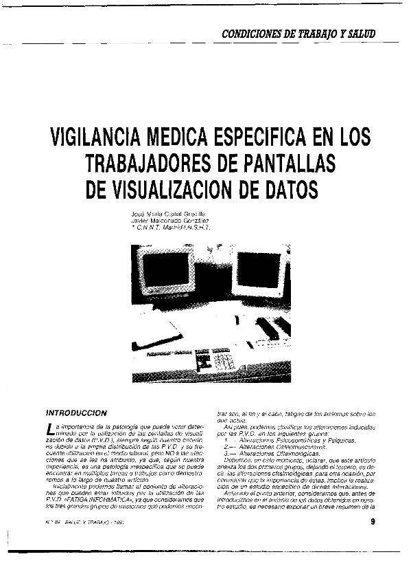 Vigilancia médica específica en los trabajadores de pantallas de visualización de datos