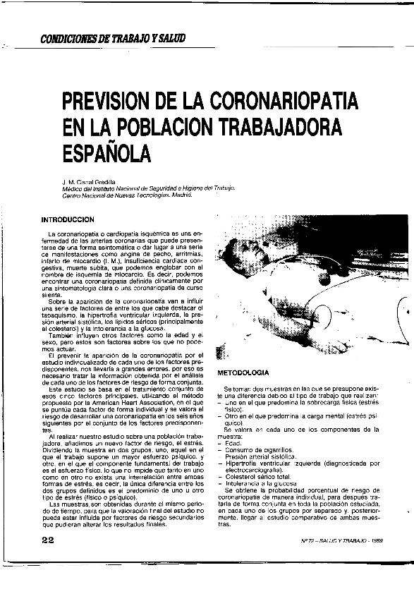 Previsión de la coronariopatía en la población trabajadora española