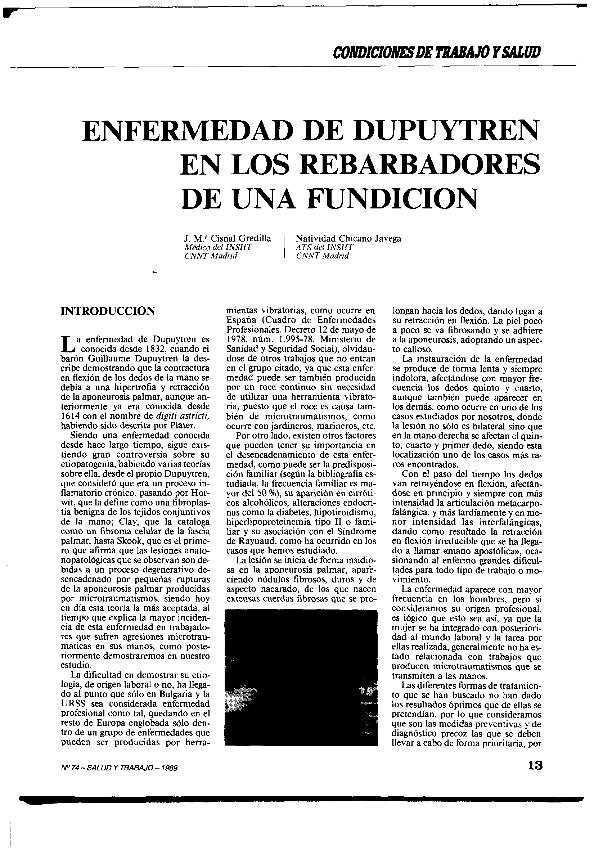 Enfermedad de Dupuytren en los rebarbadores de una fundición