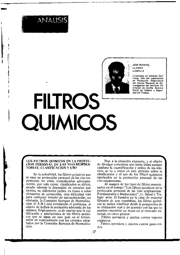 Filtros químicos contra gases ácidos usados en protección personal : ensayados frente a ácido...