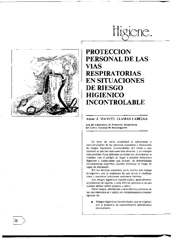 Protección personal de las vías respiratorias en situaciones de riesgo higiénico incontrolable