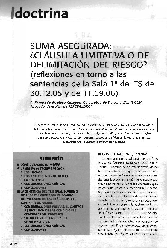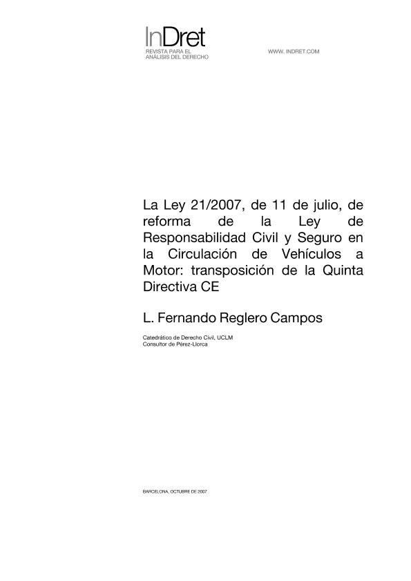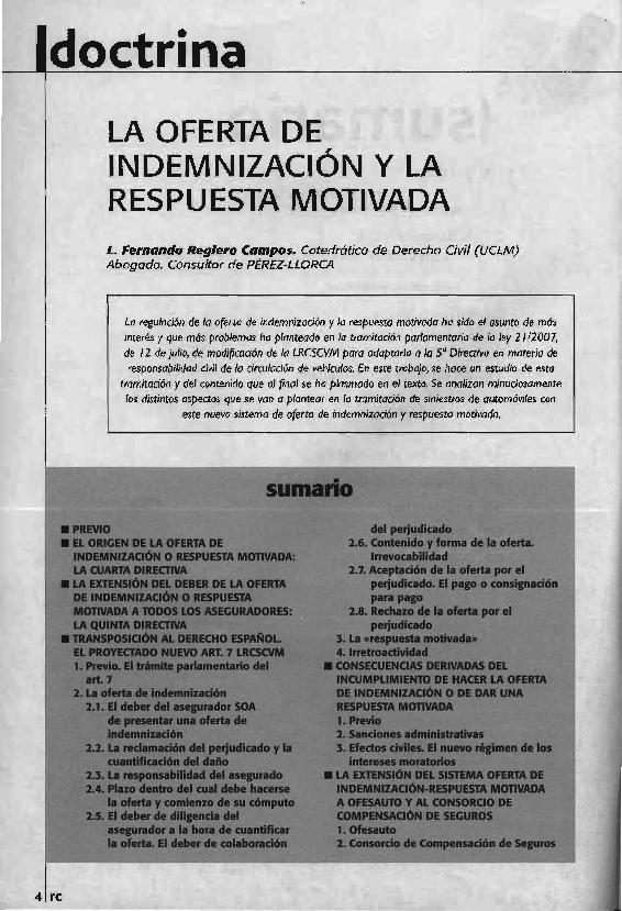 - En: RC : revista de responsabilidad civil, circulación y seguro. - Madrid : INESE, 1993- = ISSN 1133-6900. - 01/09/2007 Número 8 Septiembre 2007, p. 4-26