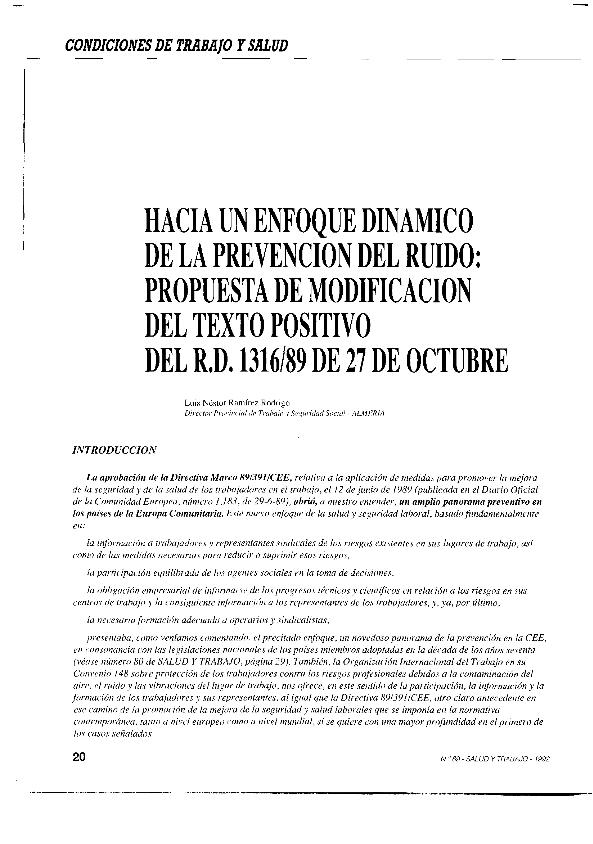 Hacia un enfoque dinámico de la prevención del ruido : propuesta de modificación del texto...