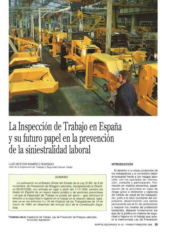 La Inspección de trabajo en España y su futuro papel en la prevención de la siniestralidad laboral