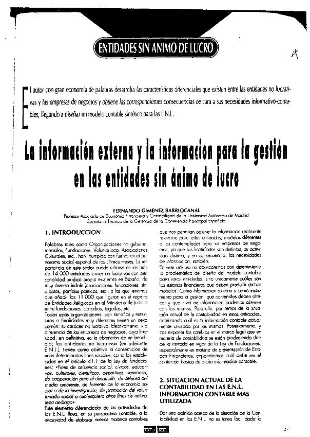 La Información externa y la información para la gestión en las entidades sin ánimo de lucro