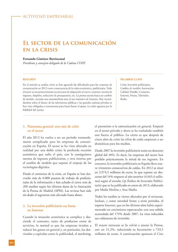 El Sector de la comunicación en la crisis