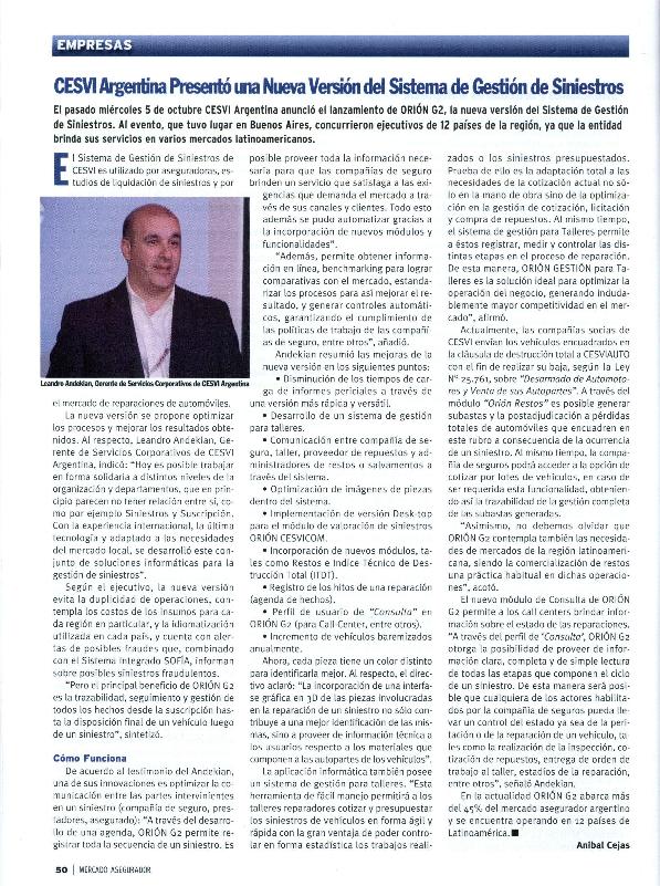 En: Mercado Asegurador. - Buenos Aires : Mercado Asegurador, 1978-. - 01/11/2011 Número 377 - noviembre 2011 , p. 50