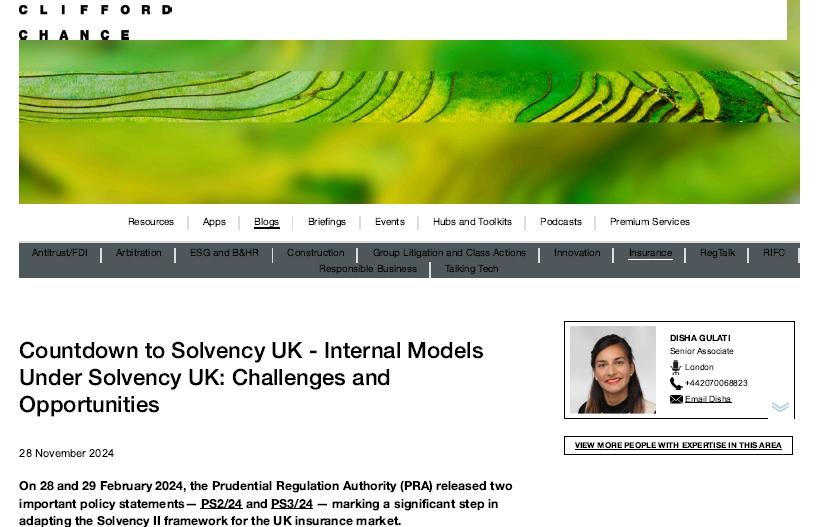 Countdown to solvency UK - internal models under solvency UK : challenges and opportunities
