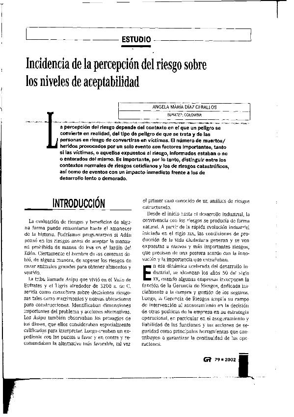 Incidencia de la percepción del riesgo sobre los niveles de aceptabilidad