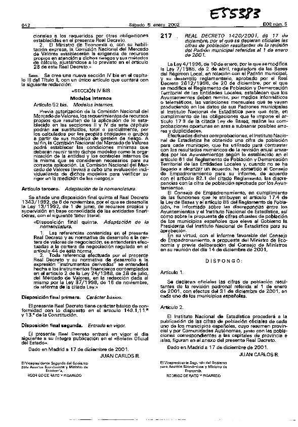 Real Decreto 1420/2001, de 17 de diciembre, por el que se declaran oficiales las cifras de...