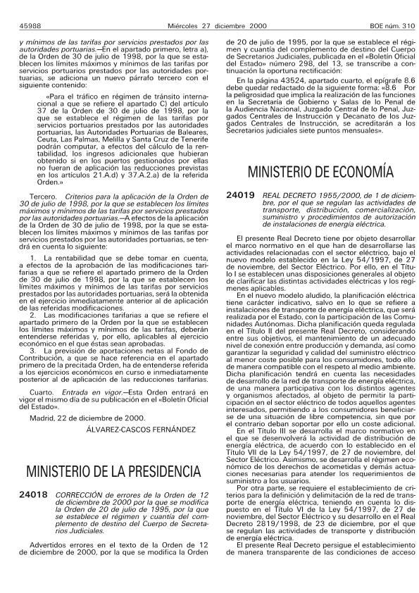 - En: . - B.O.E. núm. 310, de 27 diciembre 2000