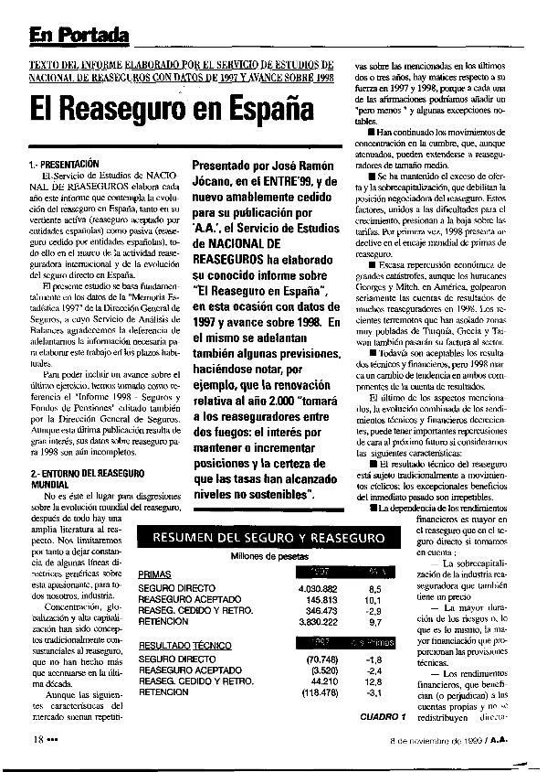En: Actualidad aseguradora. - Madrid. - nº 38, 8 de noviembre 1999 ; p. 18-26