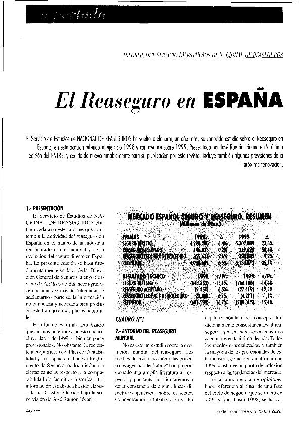 El Reaseguro en España : datos de 1999