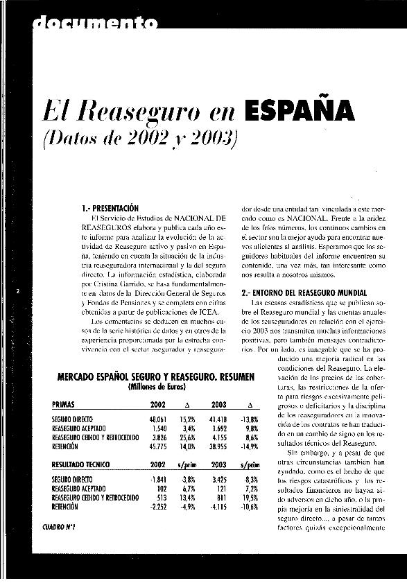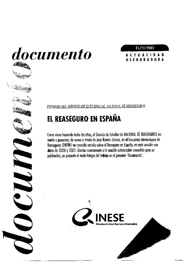 El Reaseguro en España : (datos de 2001 y 2002)