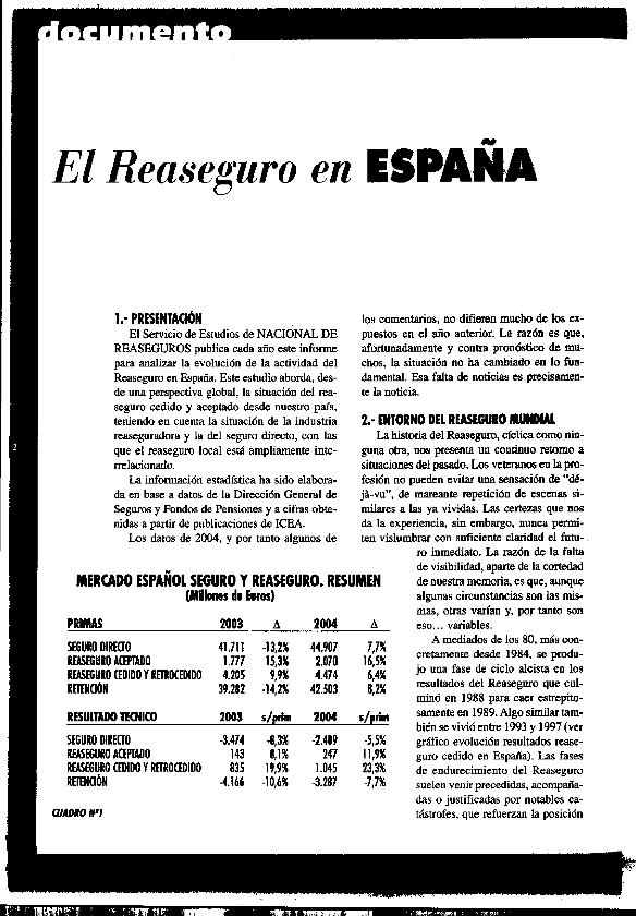 El Reaseguro en España : (datos de 2002 y 2003)