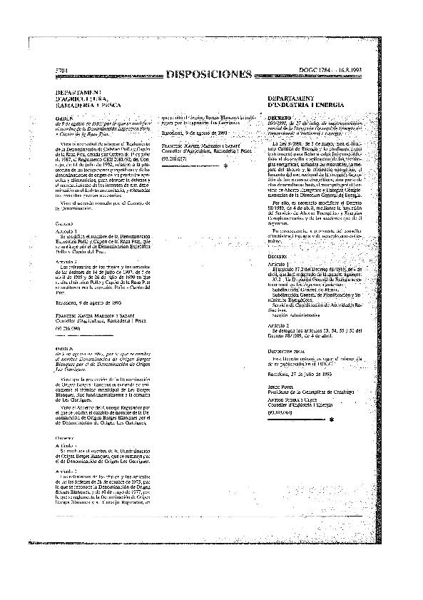 - En: . - D.O.G.C. núm. 1784, de 16 agosto 1993