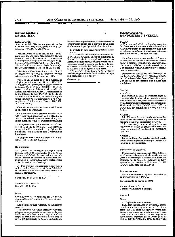 - En: . - D.O.G.C. núm. 1886, de 20 abril 1994