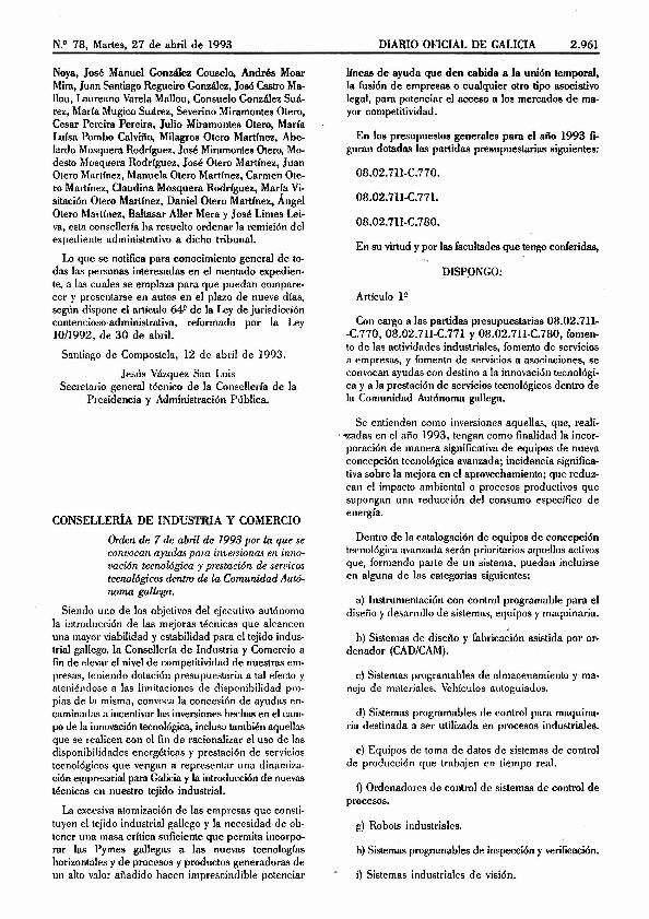 - En: . - D.O.G. núm. 78, de 27 abril 1993