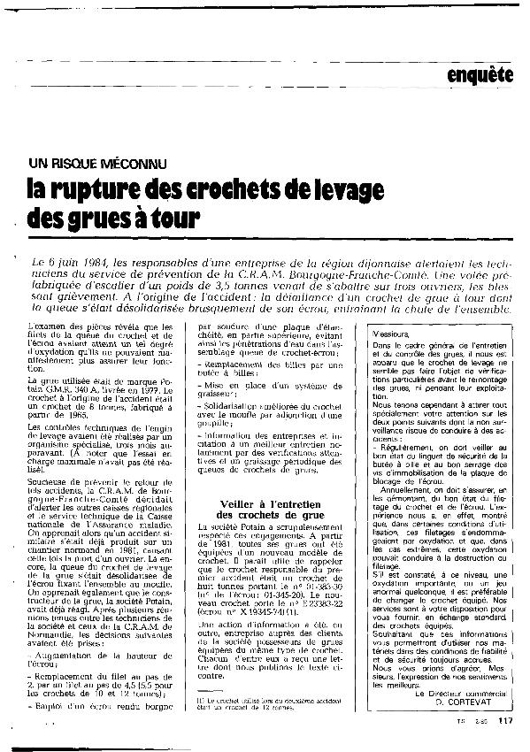 En: Travail & sécurité. - Paris. - nº 2, Février 1985 ; p. 117-118