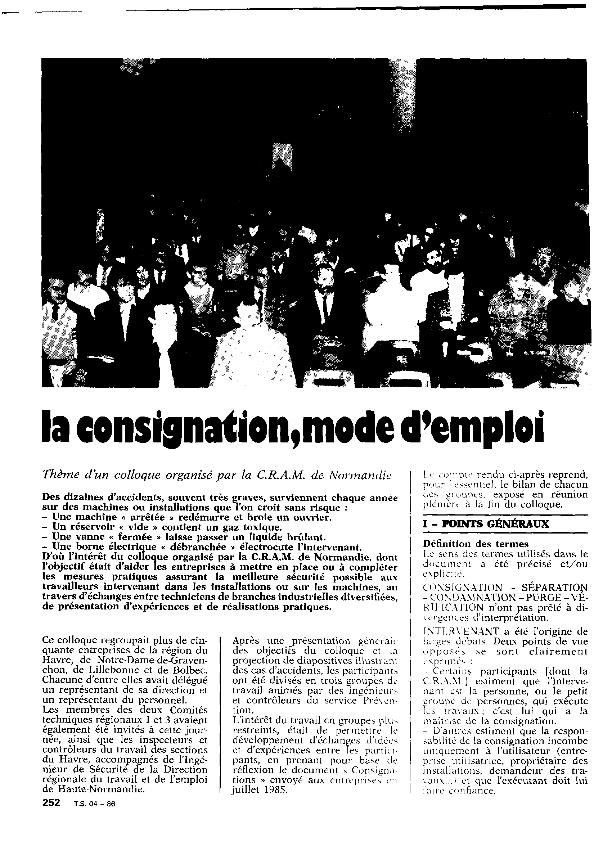 La Consignation, mode d'emploi : thème d'un colloque organisé par la C.R.A.M. de Normandie