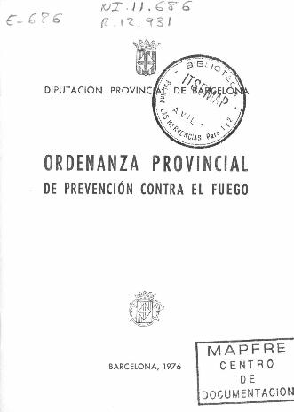 Ordenanza provincial de prevención contra el fuego : Diputación Provincial de Barcelona