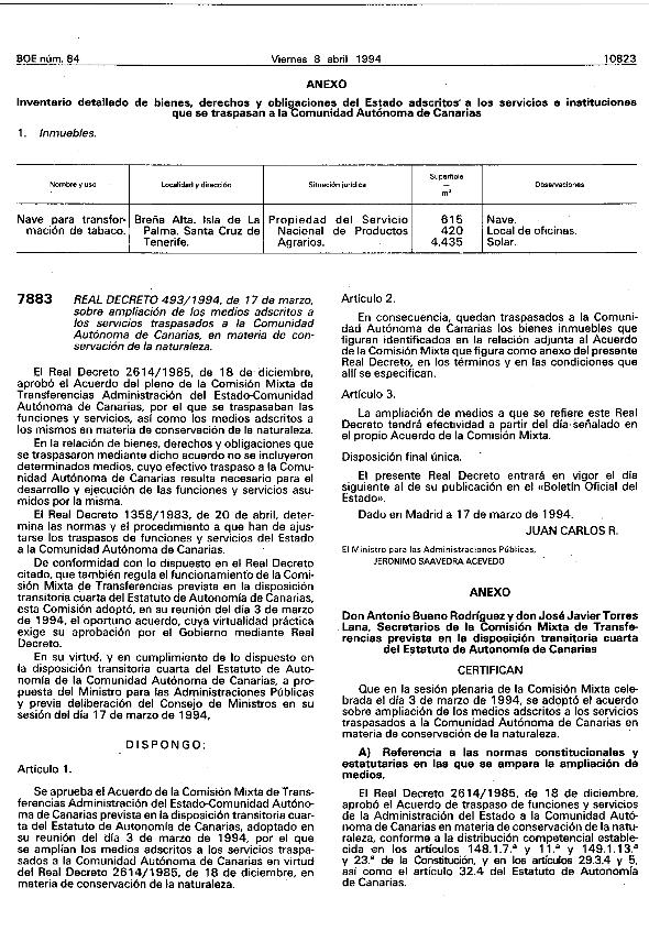 Real Decreto 493/1994, de 17 de marzo, sobre ampliación de los medios adscritos a los servicios...