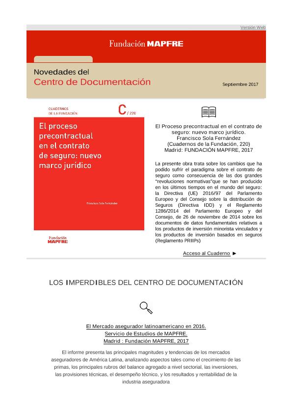 Novedades del Centro de Documentación de Fundación MAPFRE - Septiembre 2017