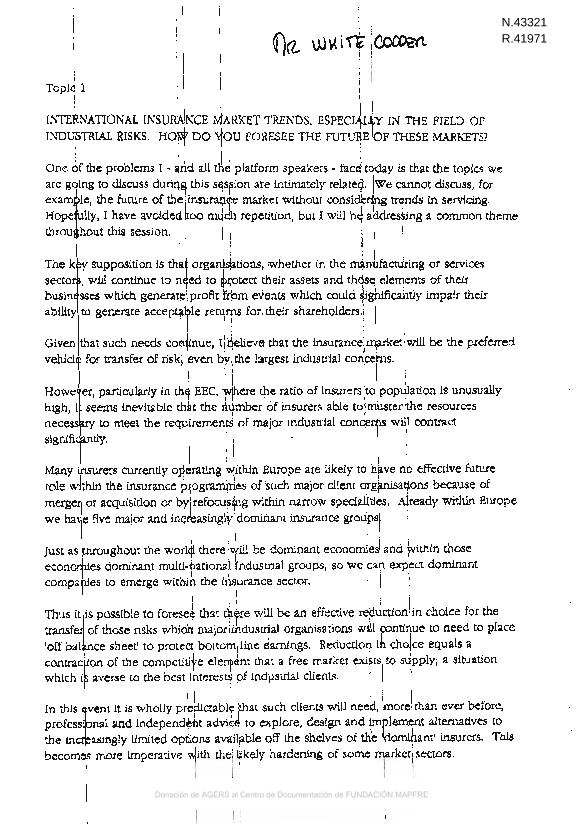 International insurance market trends, especially in the field of industrial risks : how do you...
