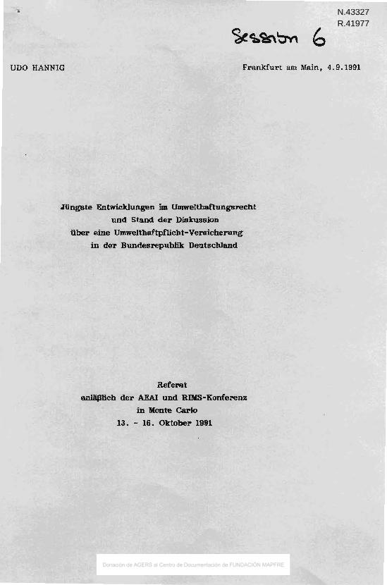 Jüngste entwicklungen im umwelthaftungsrecht und stand der diskussion über eine umwelthaftpflight...