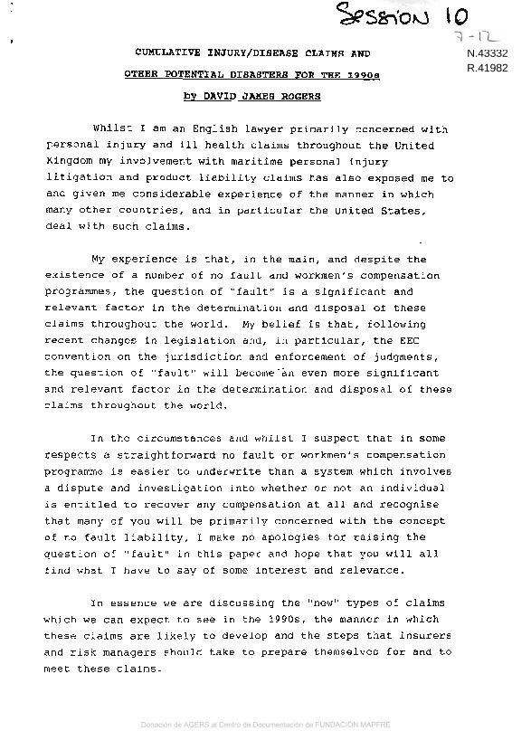 Cumulative injury : disease claims and other potencial disasters for the 1990s