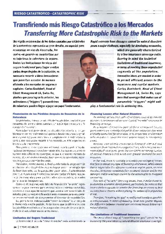Transfiriendo más riesgo catastrófico a los mercados = Transferring more catastrophic risk to the...
