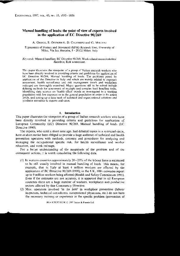 Manual handling of loads : the point of view of experts involved in the application of EC...