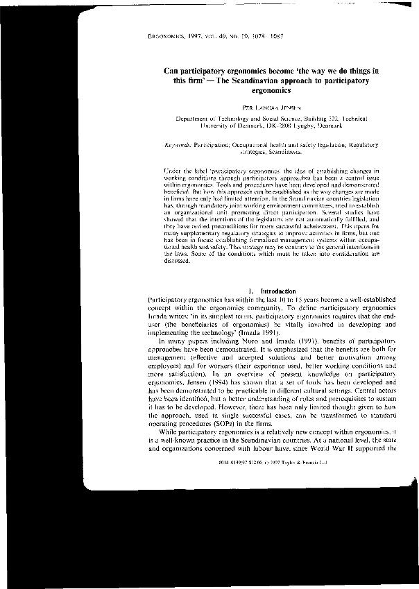 Can participatory ergonomics become "the way we do things in this firm" : the Scandinavian...