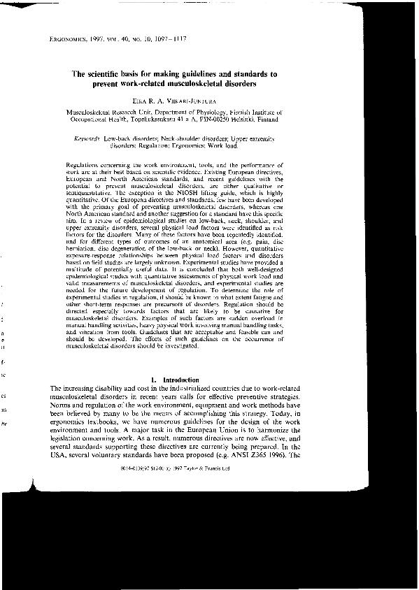 The Scientific basis for making guidelines and standars to prevent work-related musculoskeletal...