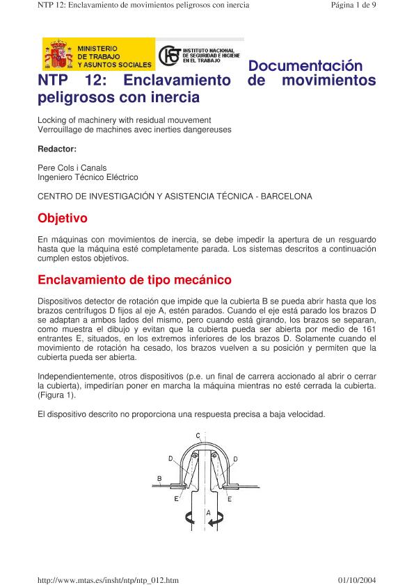 Enclavamiento de movimientos peligrosos con inercia