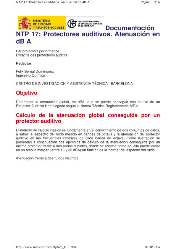 Protectores auditivos : atenuación en dB A