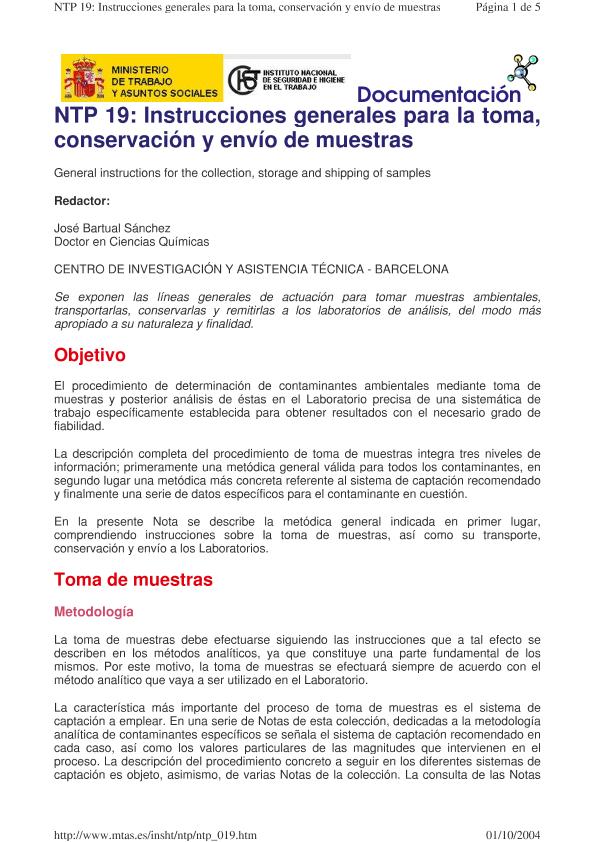 Instrucciones generales para la toma, conservación y envío de muestras