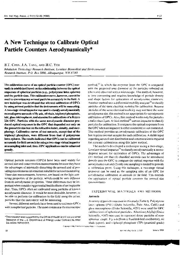 A New technique to calibrate optical particle counters aerodynamically