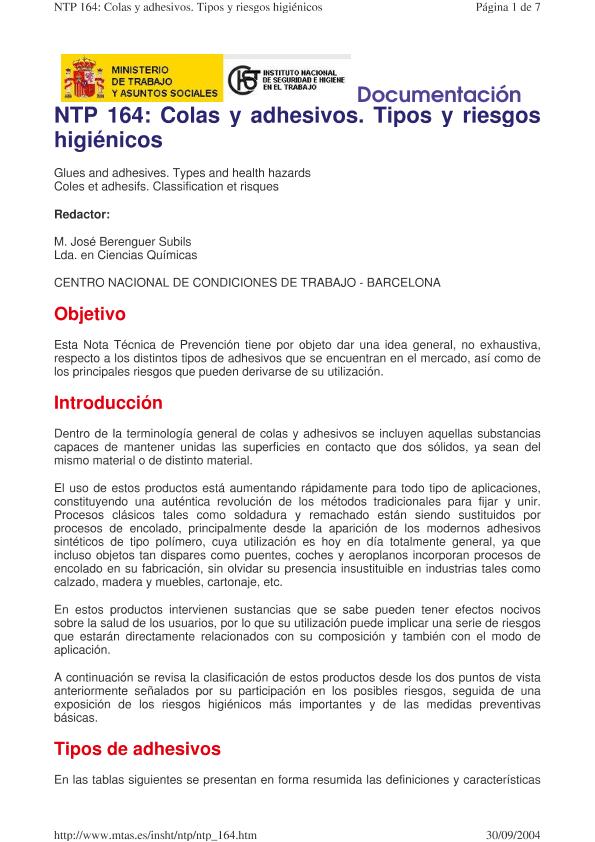 Colas y adhesivos : tipos y riesgos higiénicos