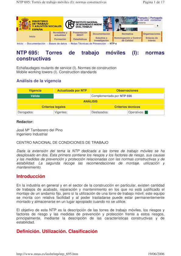 Torres de trabajo móviles. I: Normas constructivas