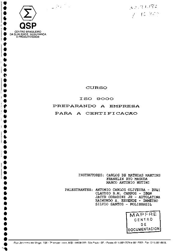 ISO 9000 : preparando a empresa para a certificaçao : curso