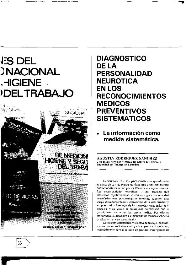 Diagnóstico de la personalidad neurótica en los reconocimientos médicos preventivos sistemáticos...