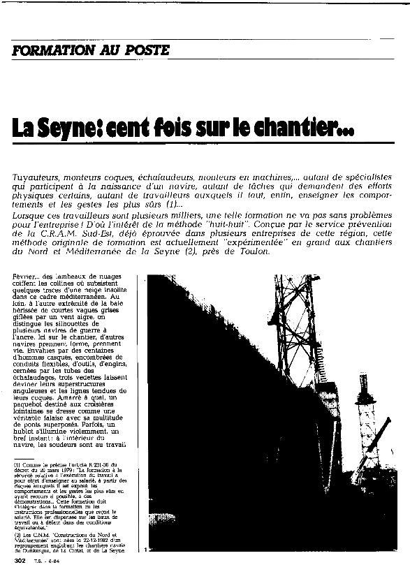 En: Travail & sécurité. - Paris. - nº 6, Juin 1984 ; p. 302-304