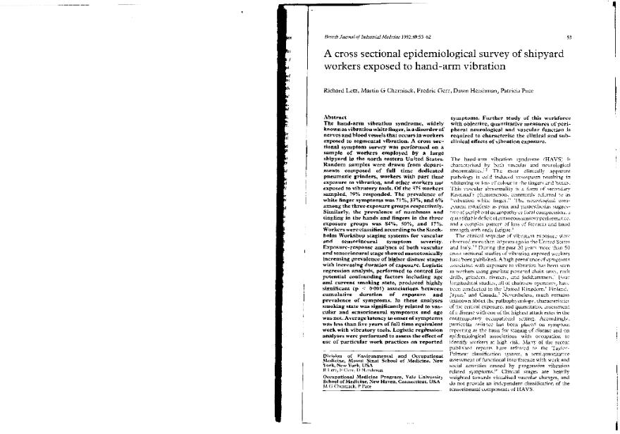 A Cross sectional epidemiological survey of shipyard workers exposed to hand-arm vibration