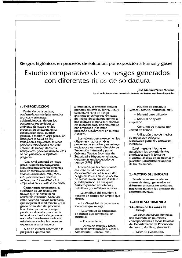Estudio comparativo de los riesgos generados con diferentes tipos de soldadura