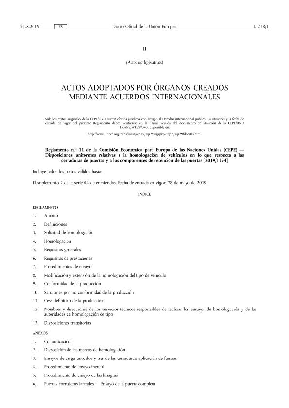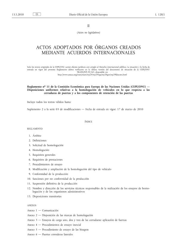 Reglamento nº 11 de la Comisión Económica para Europa de las Naciones Unidas (CEPE/ONU)....