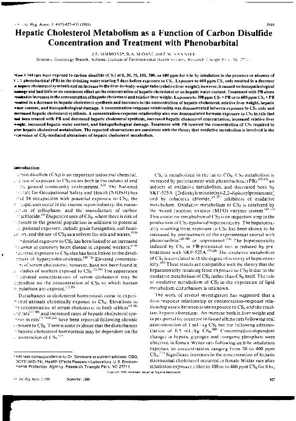 Hepatic cholesterol metabolism as a function of carbon disulfide concentration and treatment with...