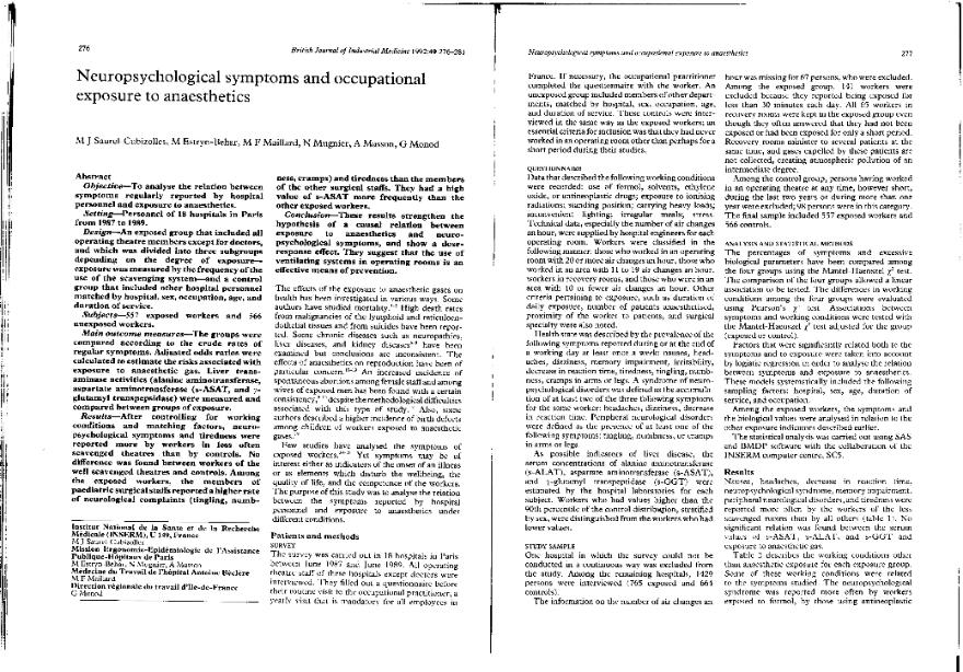 Neuropsychological symptoms and occupational exposure to anaesthetics