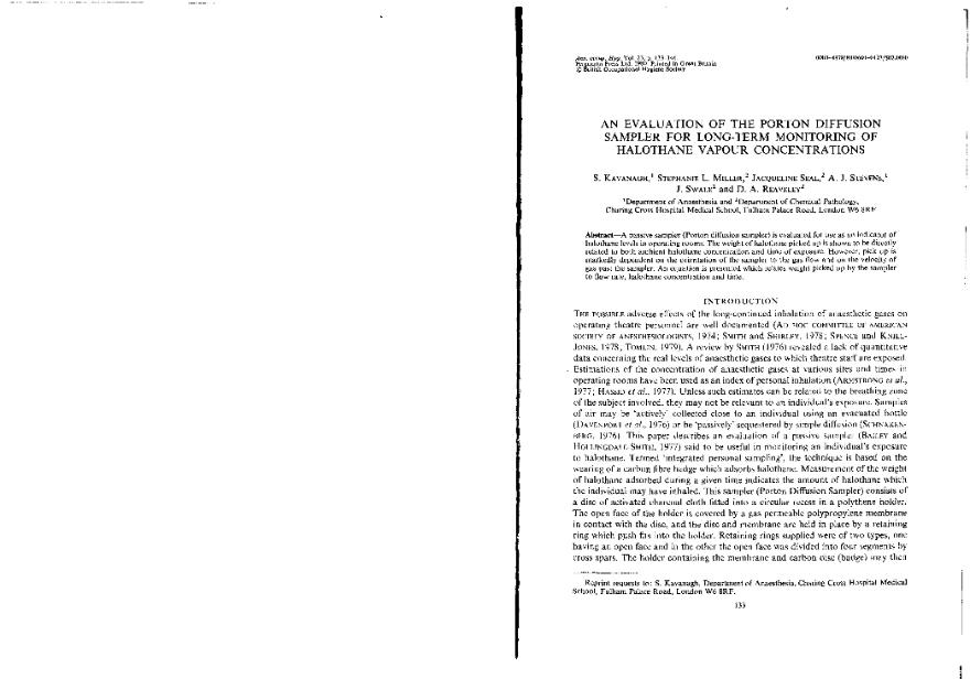An Evaluation of the portion diffusion sampler for long-term monitoring of halothane vapour...