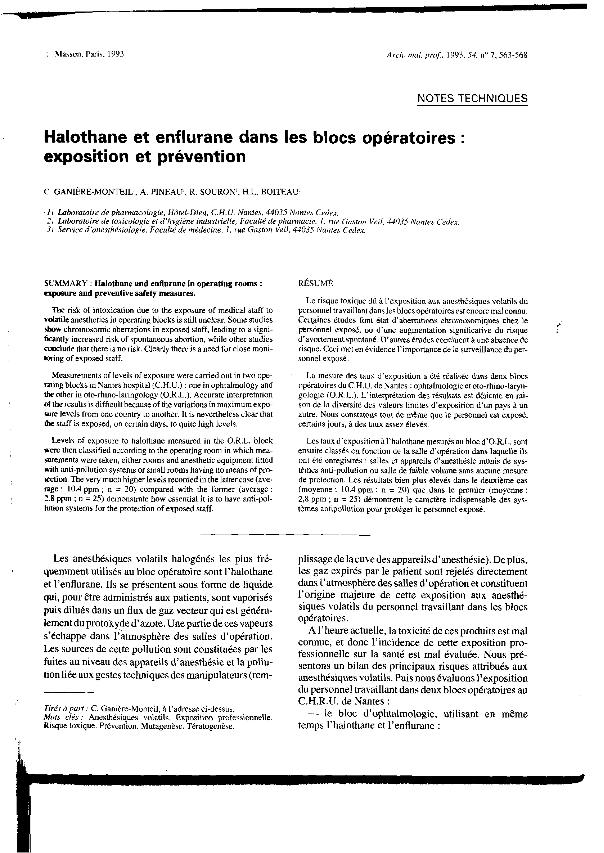 Halothane et enflurane dans les blocs opératoires : exposition et prévention